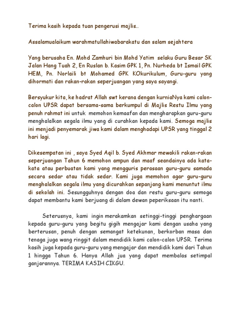 Ucapan Majlis Restu Ilmu Upsr - Maka, majlis mohon restu ilmu merupakan sebagai persediaan terakhir calon upsr untuk menghadapi peperiksaan upsr sebenar.. Sorry, aku pakai baju pj hari ini. Encik ahmad bin mohd ali pen. Majlis bacaan yassin reda ilmu tingkatan 5. Sk islah 2019 ucapan perasmian penutup bulan kebangsaan 2019. Majlis ini juga adalah untuk menyediakan calon upsr dari segi fizikal dan mental sebelum menduduki peperiksaan sebenar sekaligus sebagai lafaz restu.