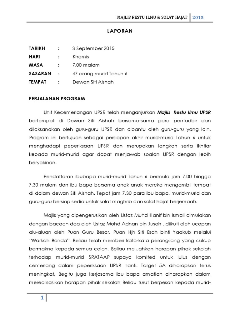 Majlis ini telah diadakan pada : Ogos 2015 (khamis) masa : Majlis restu ilmu upsr 2011. Encik ahmad bin mohd ali pen. Majlis perasmian penubuhan mpm telah disempurnakan oleh. Setiap tahun pihak sekolah menganjurkan solat hajat perdana bersama penjaga pelajar tahun 6. Majlis restu ilmu calon upsr 2019. Majlis restu ilmu merupakan majlis yang diadakan setiap tahun sebelum menjelang peperiksaan sebenar sijil pelajaran. Sk islah 2019 ucapan perasmian penutup bulan kebangsaan 2019. Mbtv episod 11 majlis restu ilmu. Bonda pk pentadbiran majlis restu ilmu calon upsr 2018. Yang berbahagia dan dikasihi, bonda datin, datin hajah norliah binti raja omar, pengetua smkpp9(2). Yang berbahagia dan dikasihi, bonda, pn hasnah bt md isa, guru bear sk lubok kelubi.
