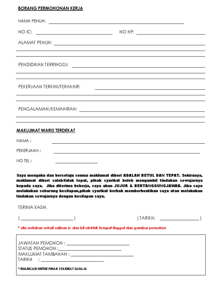 Jika anda sedang mencari pekerjaan sila isi borang permohonan jawatan kosong di sini sekarang!